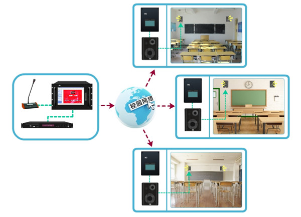 教學講解系統系統是每個學校不可缺少的基礎設施之一,盡管近幾年來視頻技術和網絡技術在飛速的發展,但教學講解系統仍以它的實用性、經濟性、便捷性被各類學校所應用。我國現有的各類學校基本上都有公共廣播系統,它主要用于各種公共場合,如舉行全校的活動、通知、升國旗、課間操、課間音樂、表揚先進、召開全校大會等。隨著現代信息技術的不斷發展,多媒體教學在廣大中小學的不斷普及,利用廣播系統進行語音教學的需求在不斷的增加,特別是音樂鈴聲的普及,英語聽力考試的實施等,對現行學校廣播系統的功能、容量、音質、智能化水平等都提出了更高的要求。